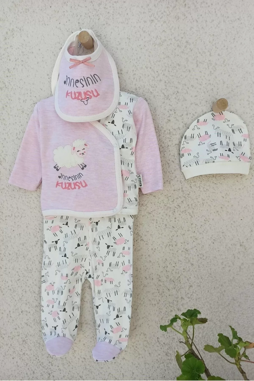 Annesinin Kuzusu Şapkalı Eldivenli 5'li Kız Zıbın Seti 0-3 Ay