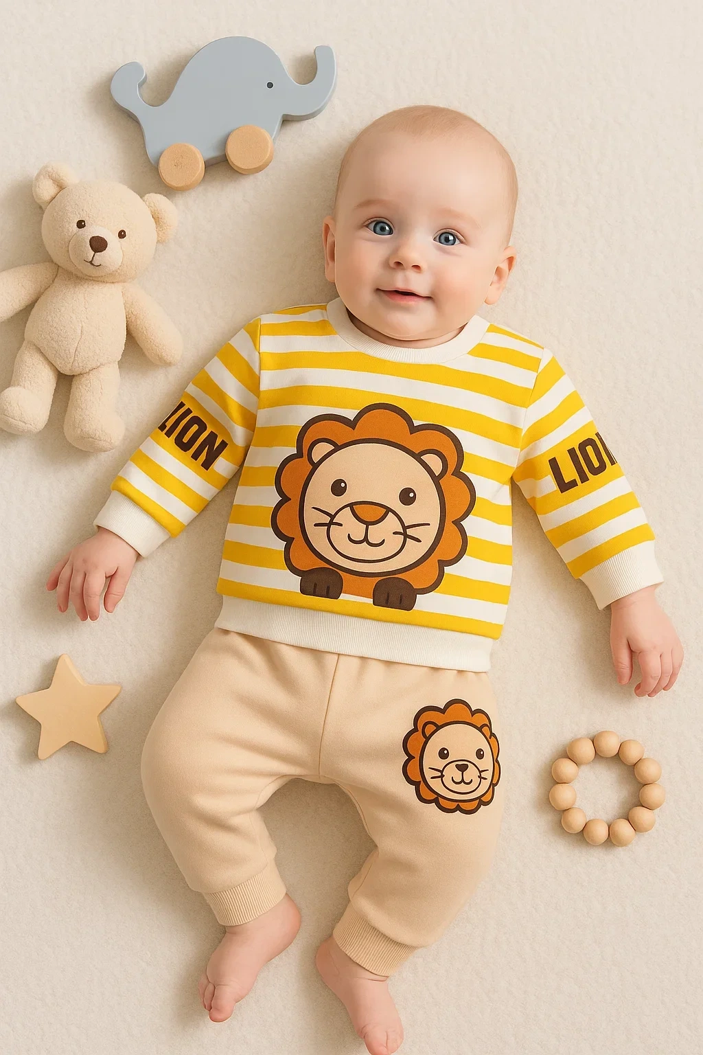 Aslan Desenli 2'li % 100 Pamuk Erkek Bebek Takımı