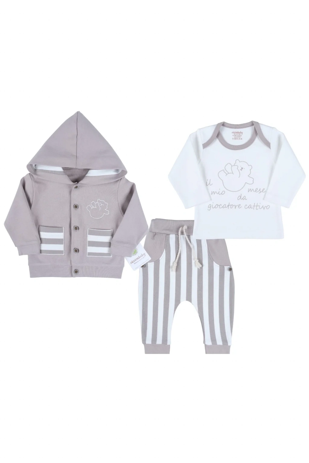 Simply Desenli Kapişonlu 3'lü Erkek Bebek Takımı