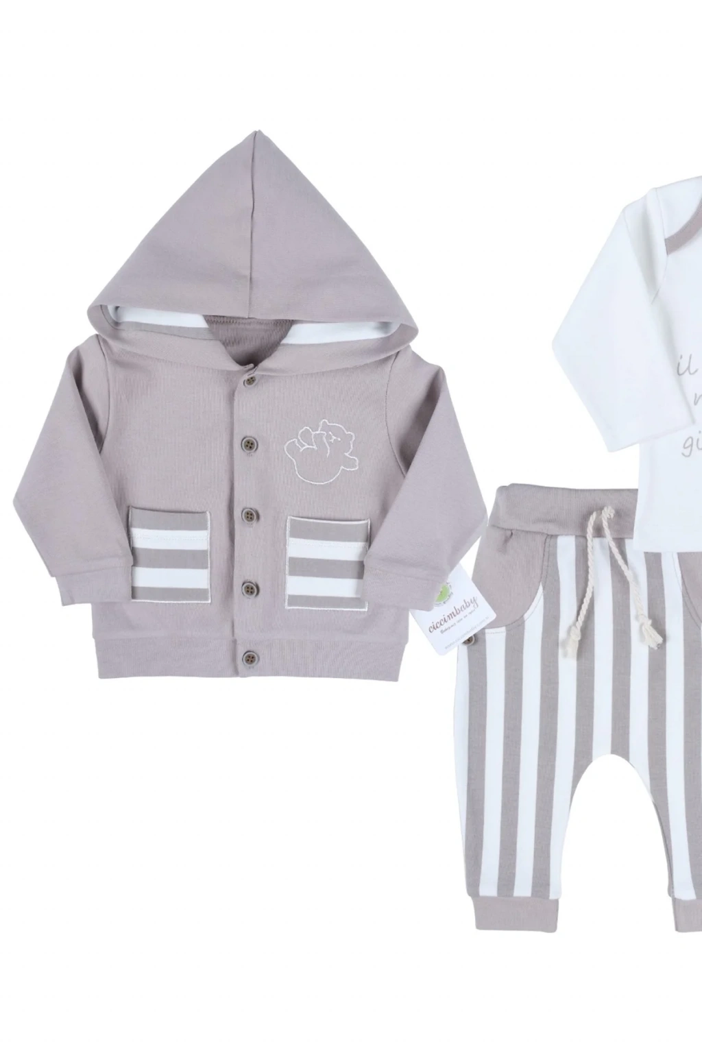 Çizgili Bear Hırkalı % 100 Pamuk Erkek Bebek Takım