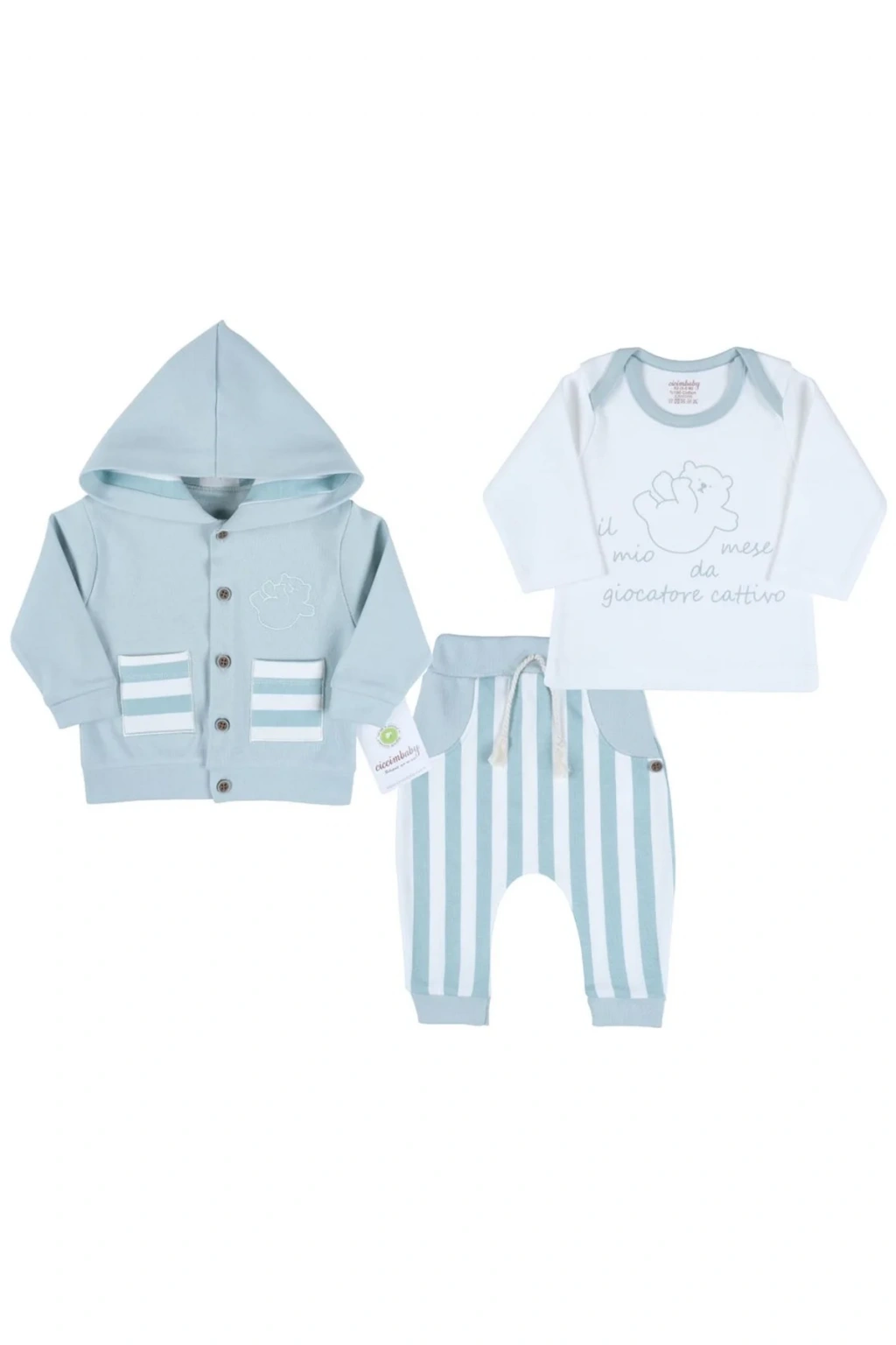 Simply Desenli Kapişonlu 3'lü Erkek Bebek Takımı