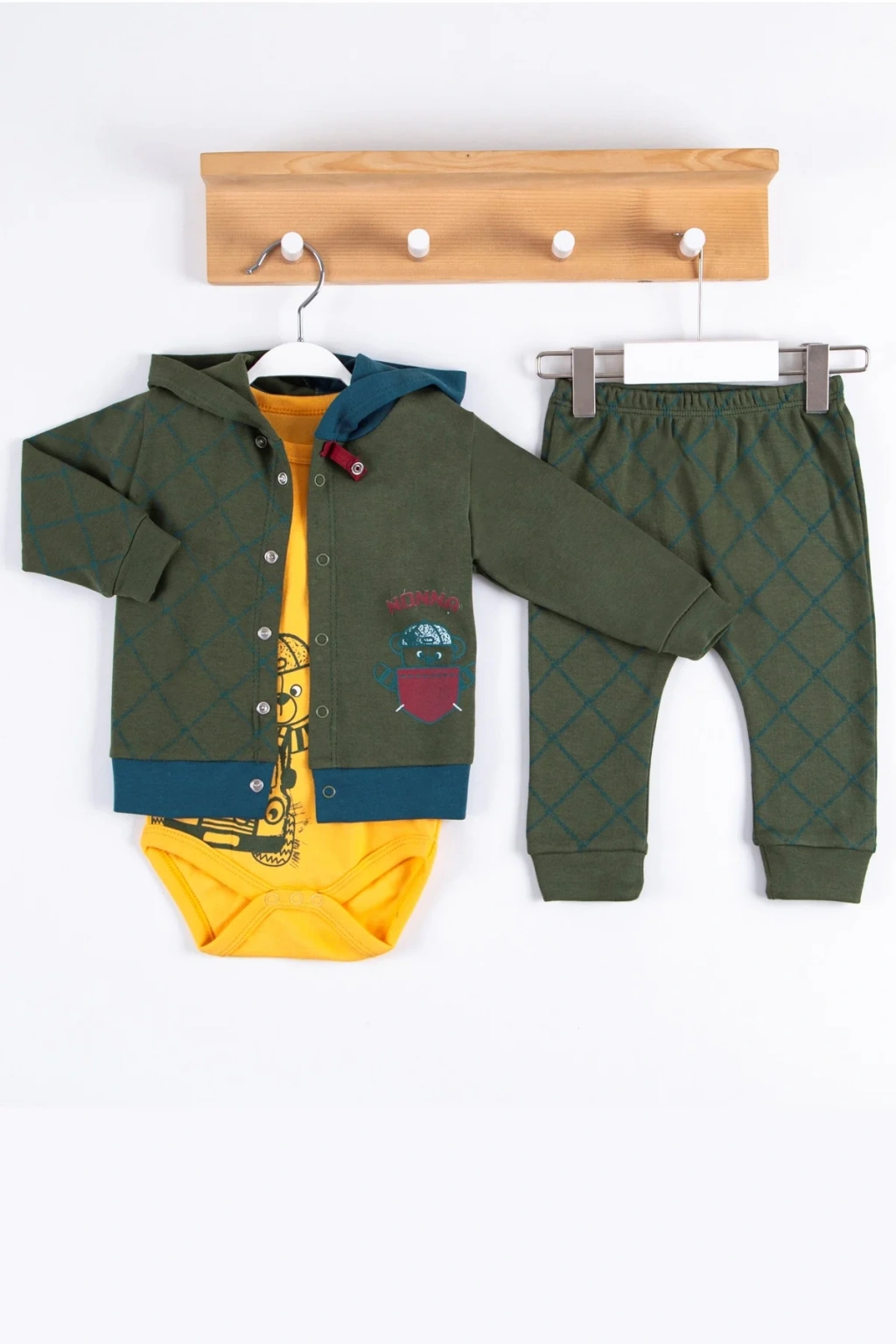 Simply Desenli Kapişonlu 3'lü Erkek Bebek Takımı