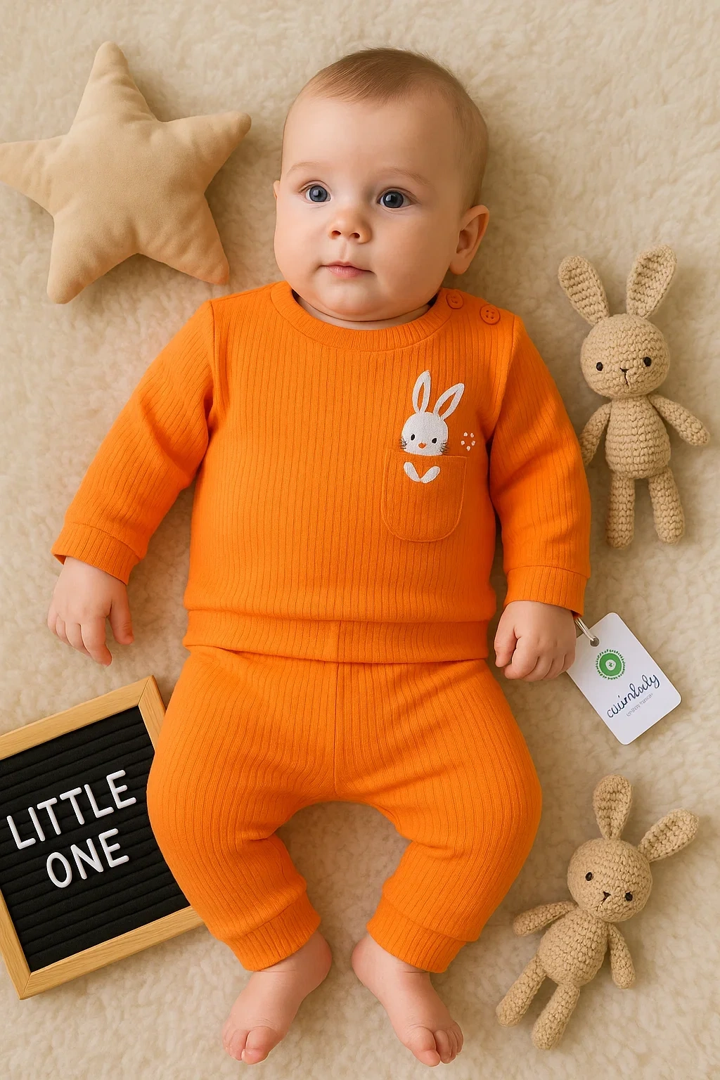 Cepli Tavşan Nakışlı % 100 Pamuk 2'li Kız Bebek Takımı