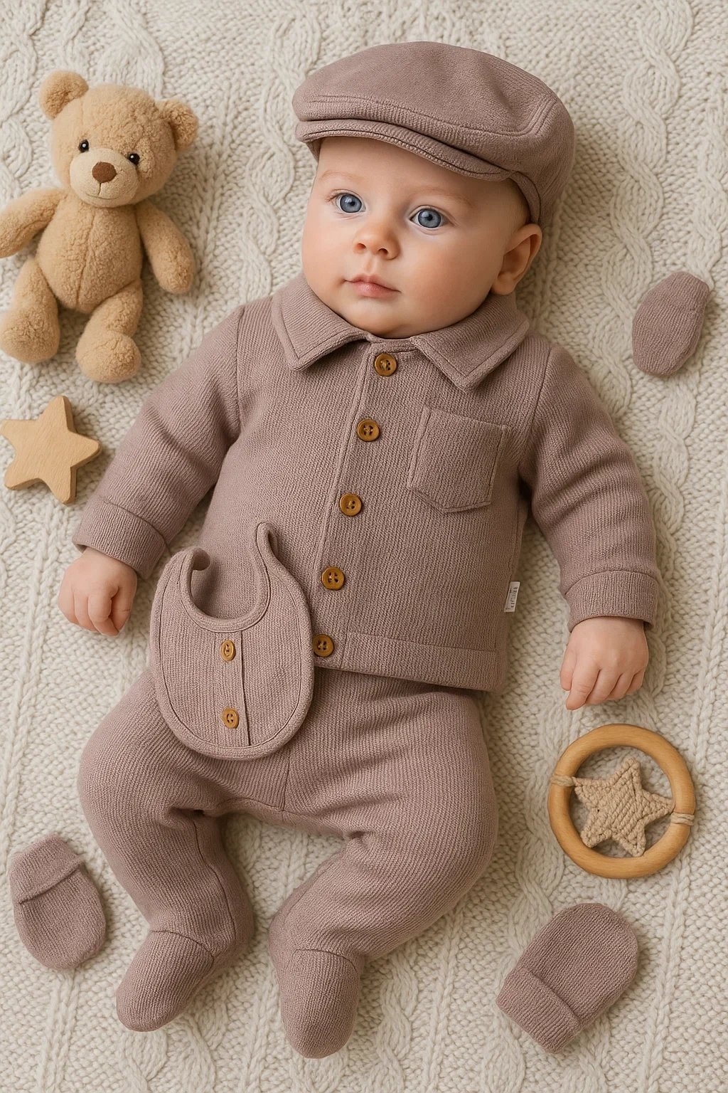 Cepli Waffle % 100 Pamuk 5'li Erkek Bebek Hastane Çıkış Seti