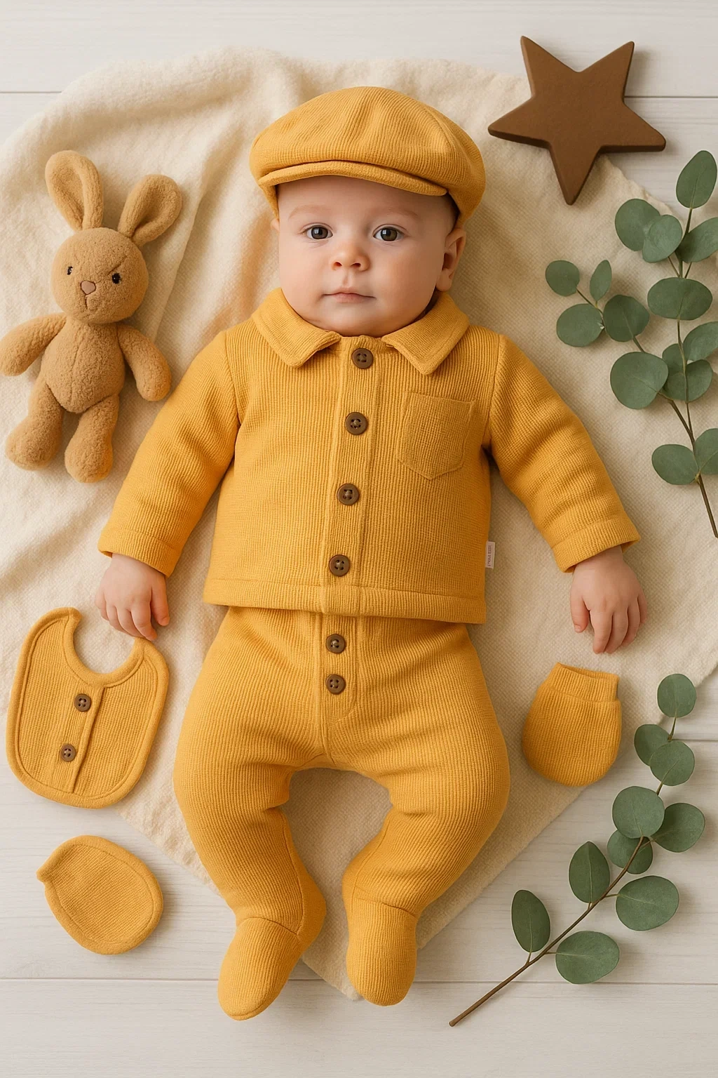 Cepli Waffle % 100 Pamuk 5'li Erkek Bebek Hastane Çıkış Seti
