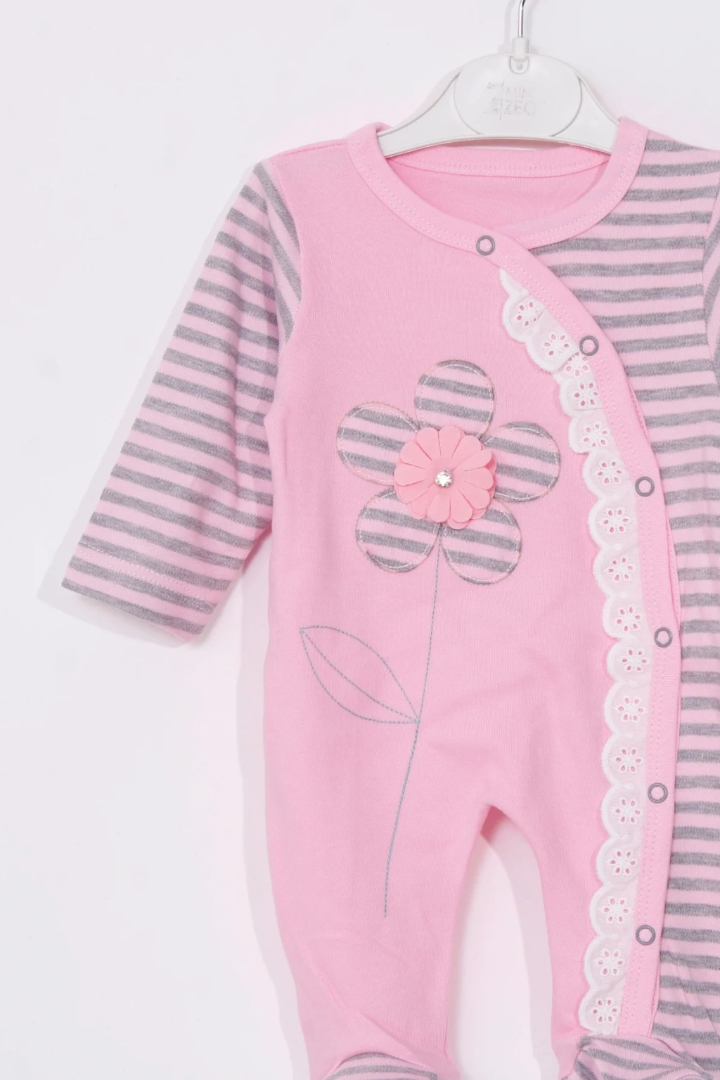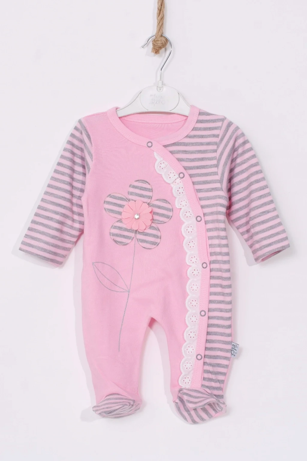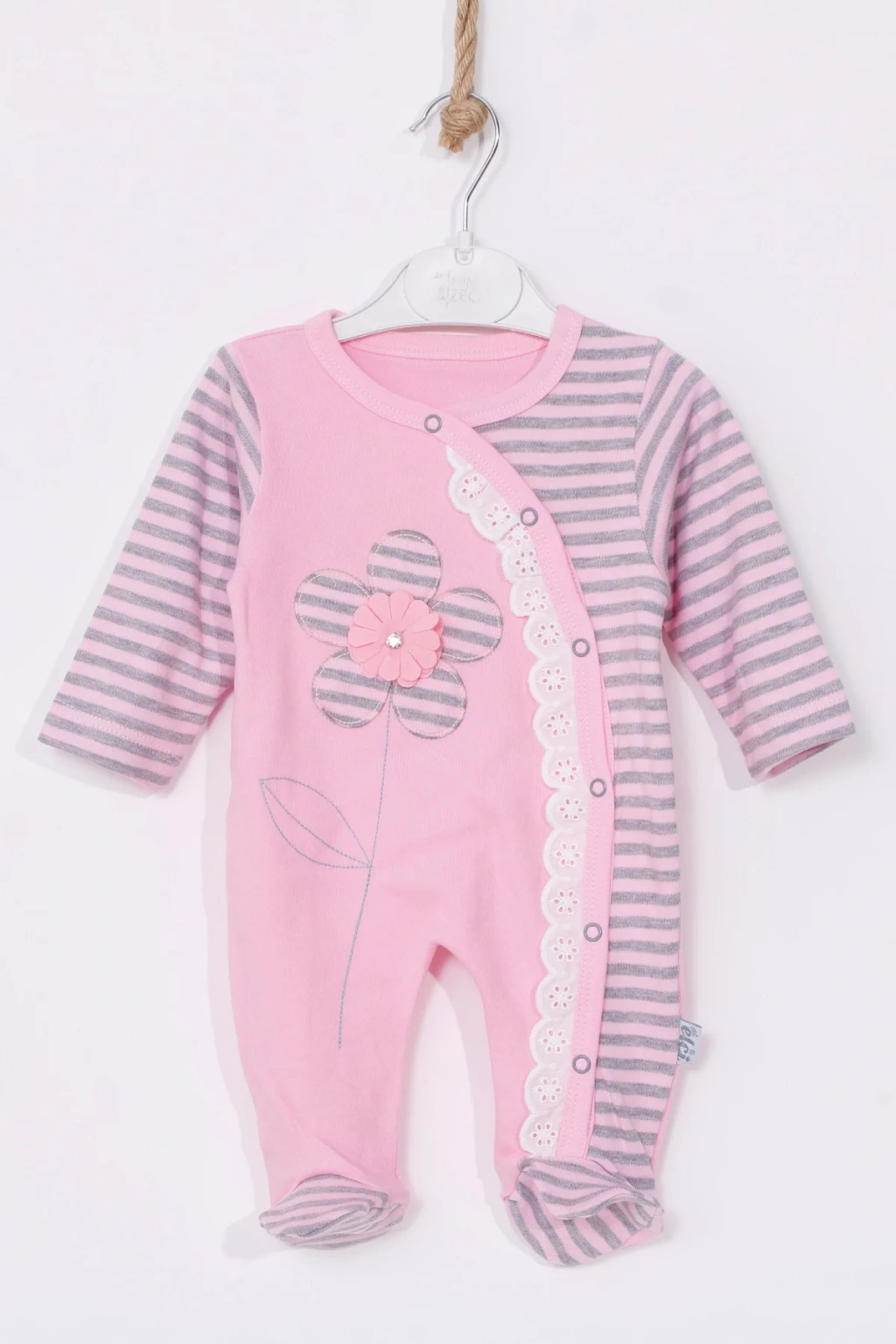 Çiçek Nakışlı % 100 Pamuk Ayaklı Kız Bebek Tulumu
