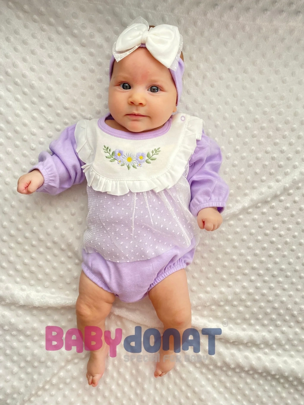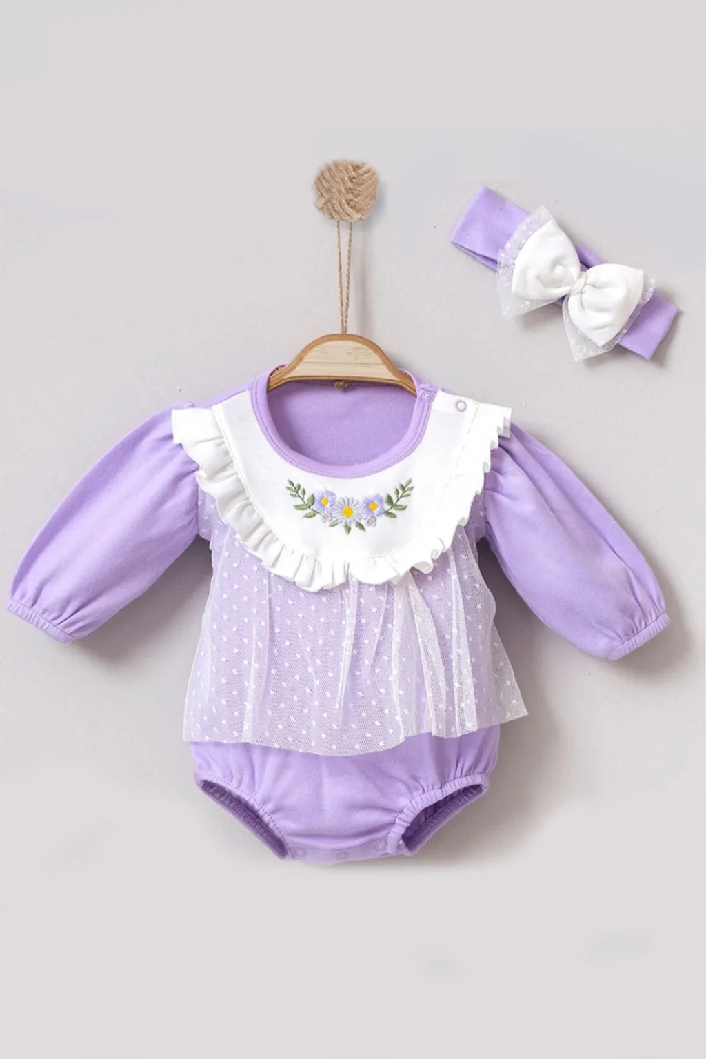 Çiçek Nakışlı Tüllü Bandanalı Kız Bebek Romper