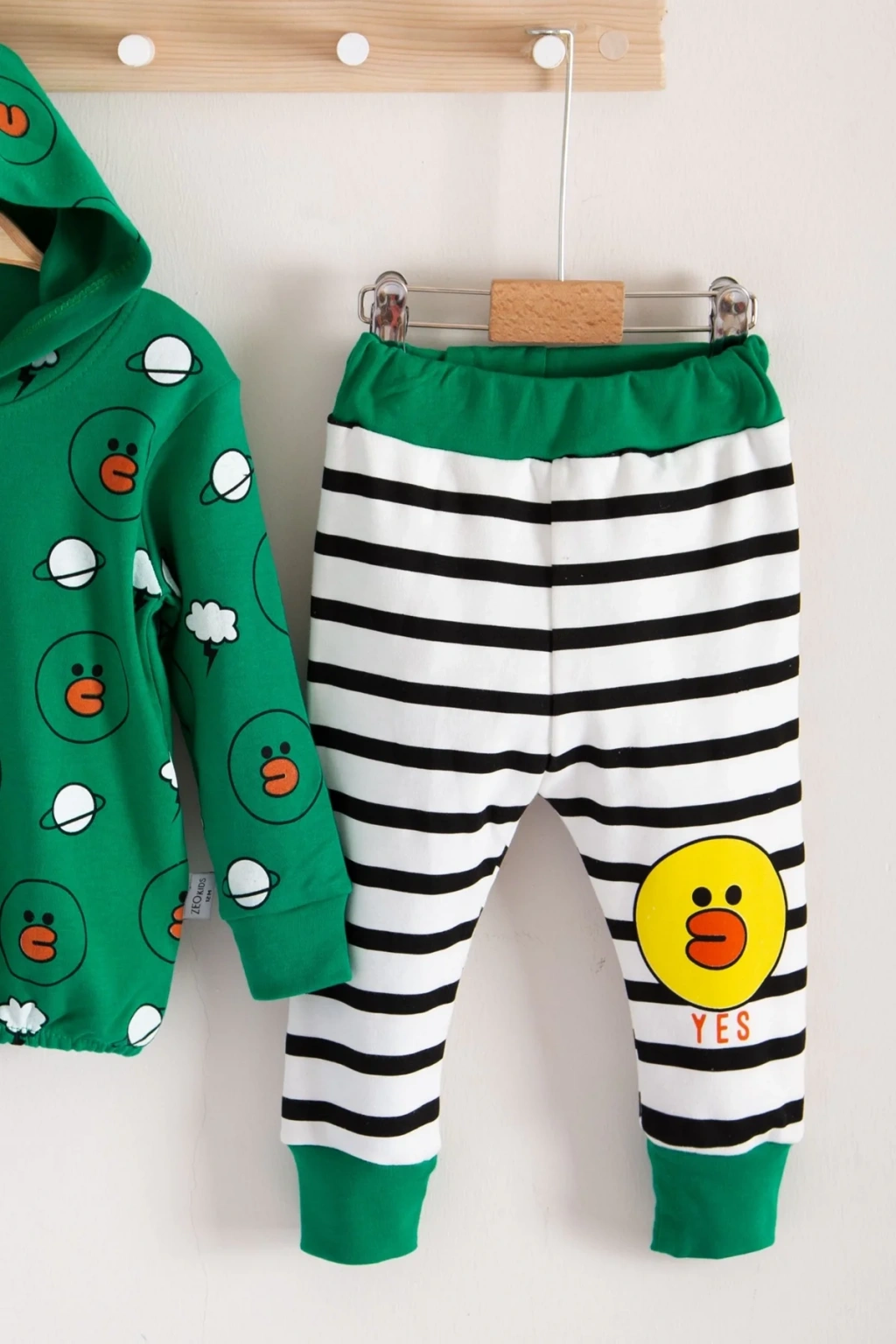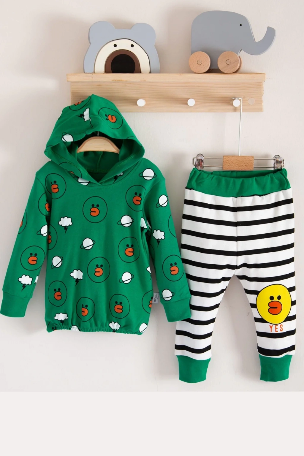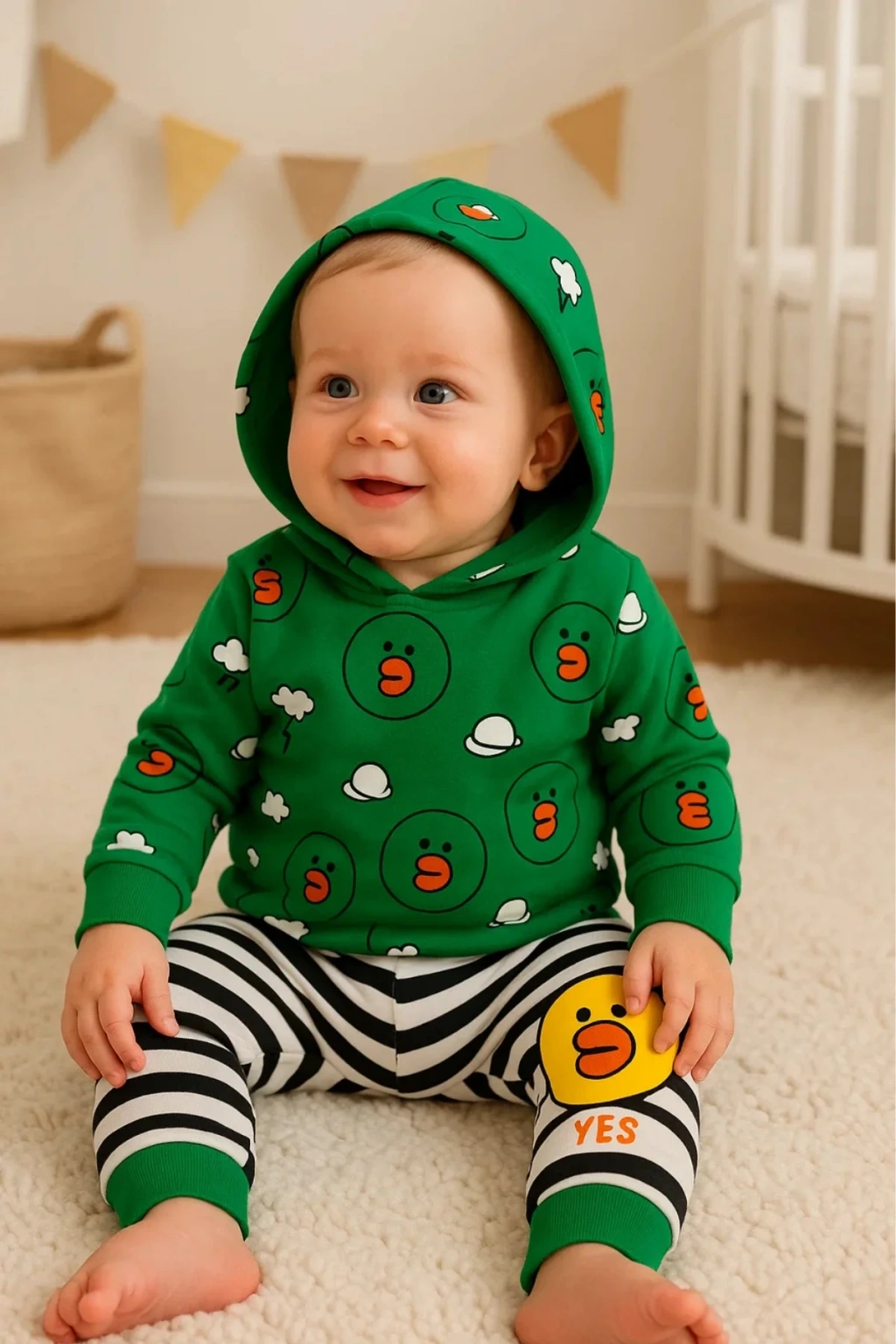 Civciv Desenli Kapişonlu 3'lü Erkek Bebek Takımı