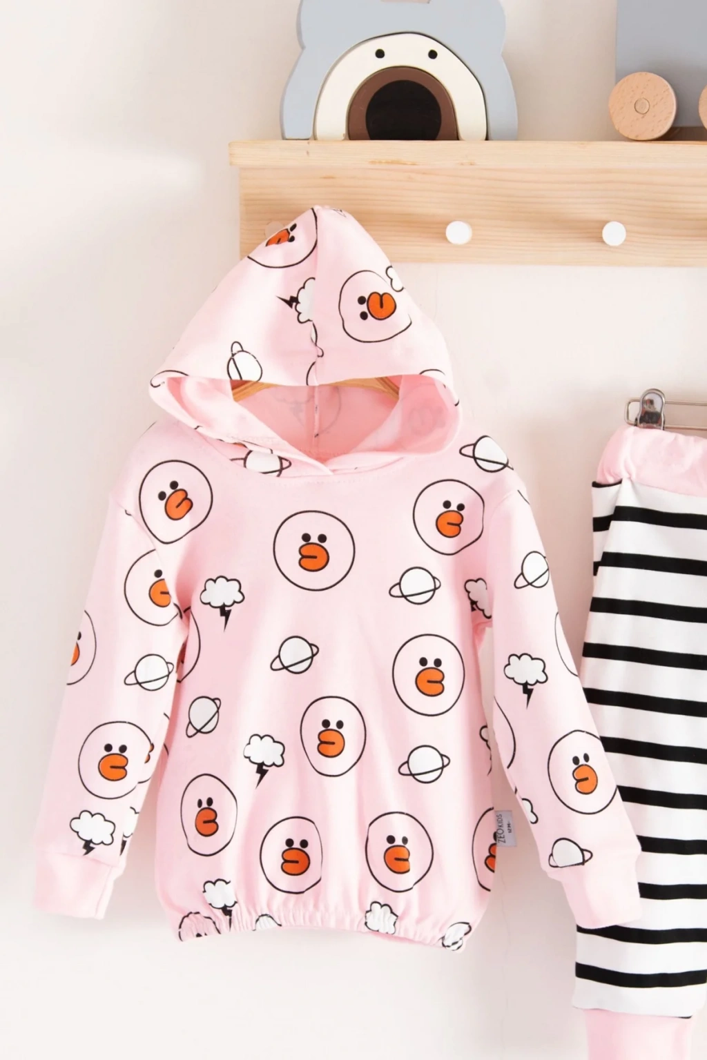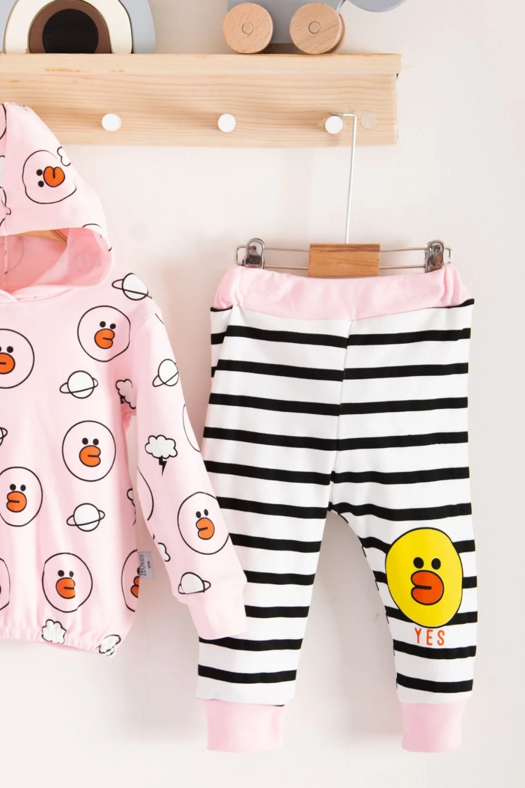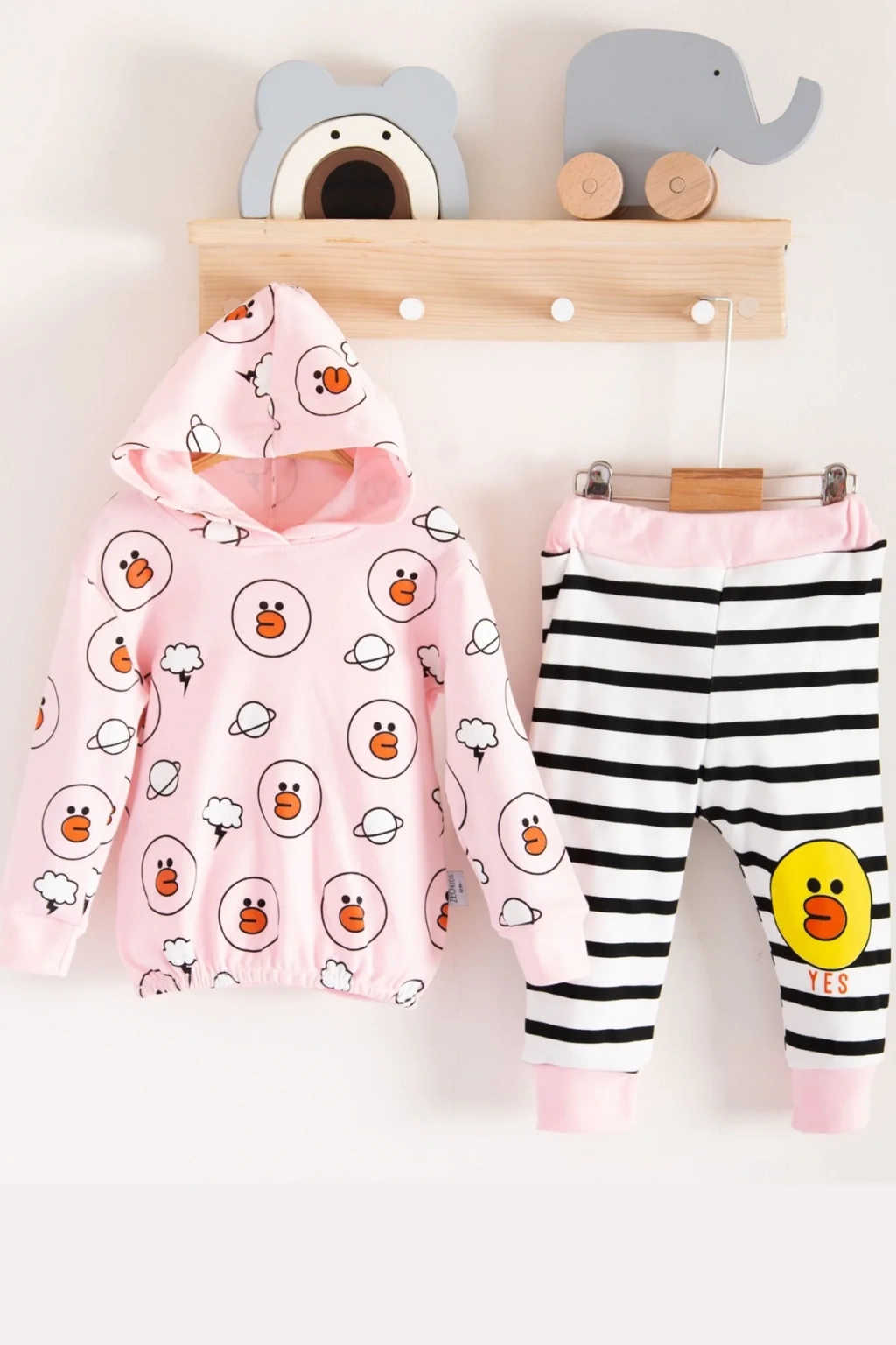 Yıldız Nakışlı Kapişonlu Kız Bebek Takımı