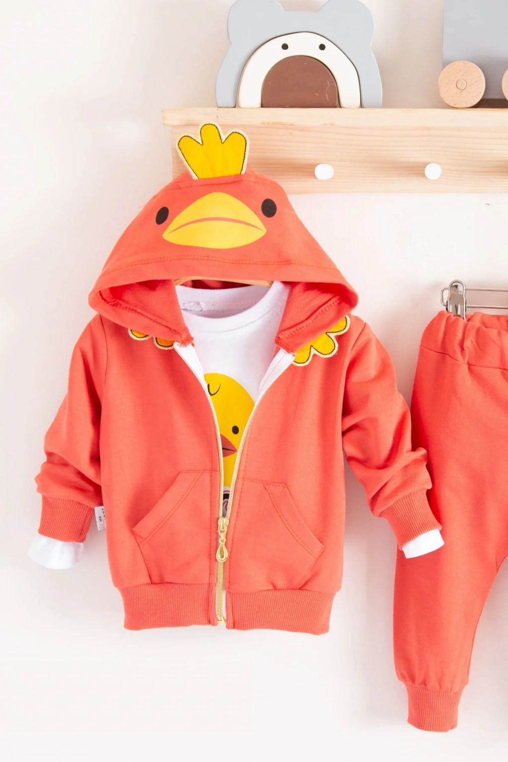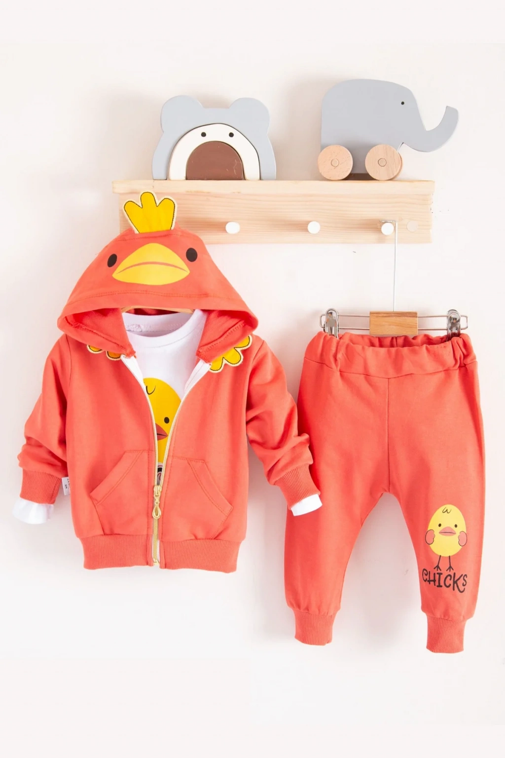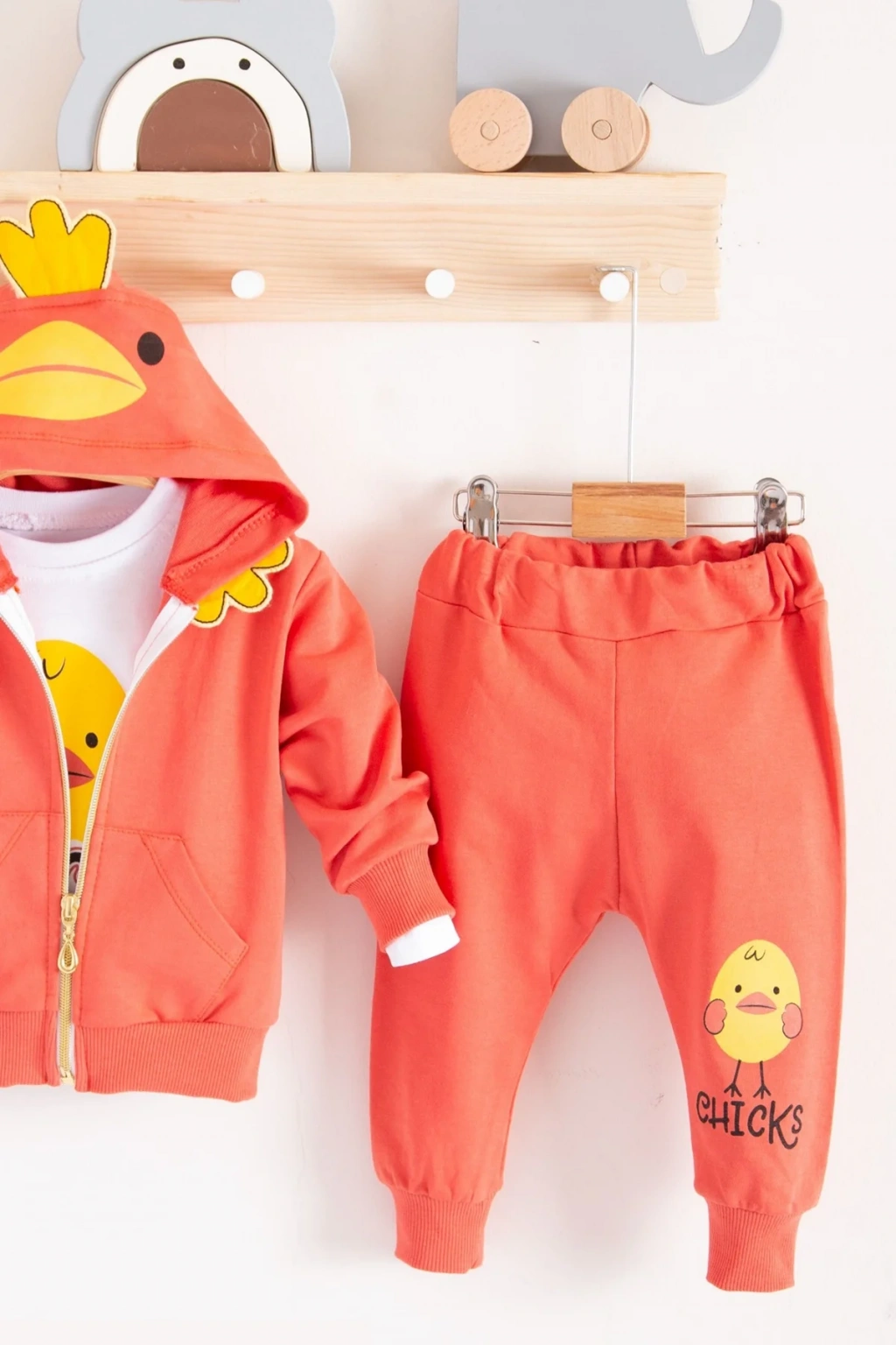 Civciv Desenli Kapişonlu 3'lü Erkek Bebek Takımı