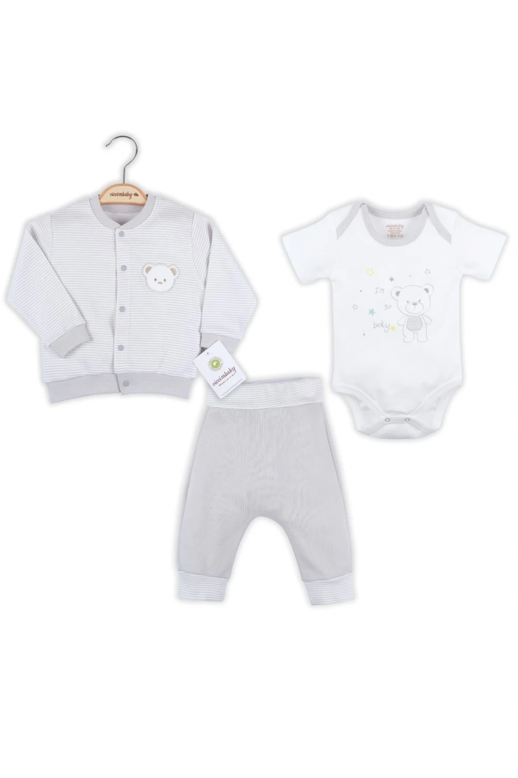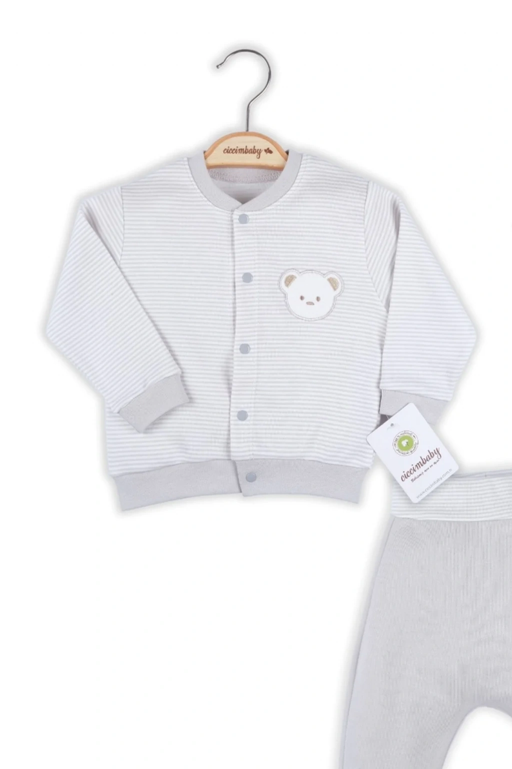 Çizgili Bear Hırkalı % 100 Pamuk Erkek Bebek Takım
