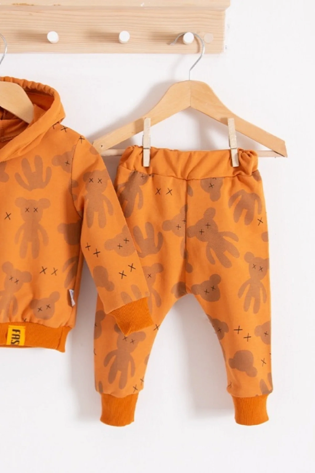 Cool Bear Kapüşonlu % 100 Pamuk Erkek Bebek Takımı