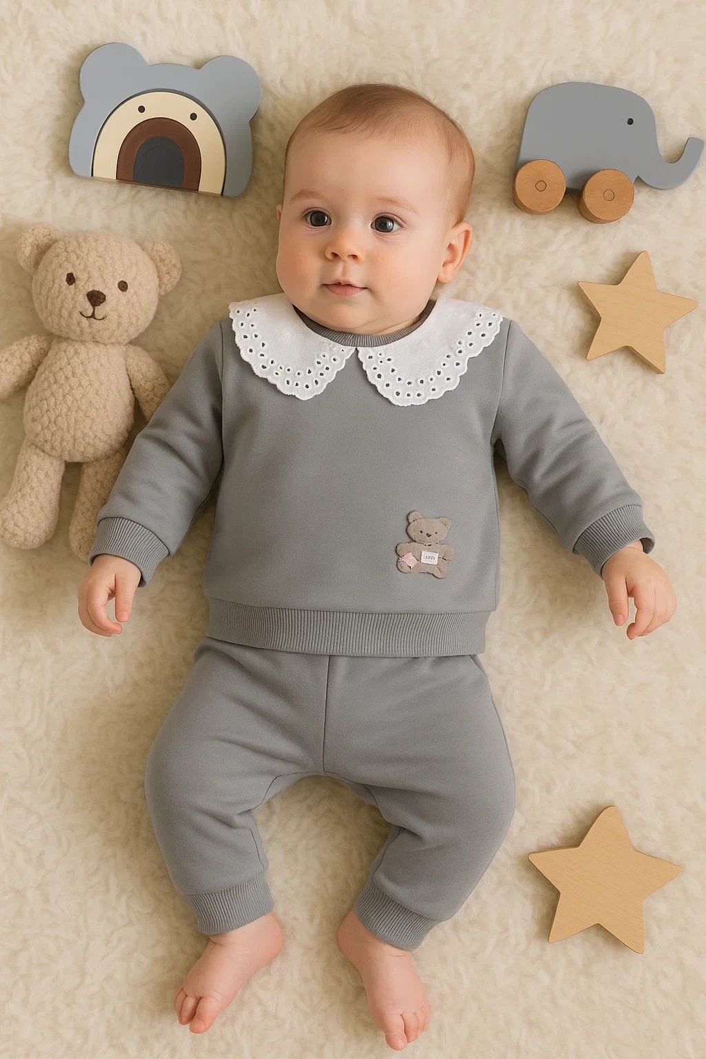 Dantel Yakalı Pamuklu 2'li Kız Bebek Takımı