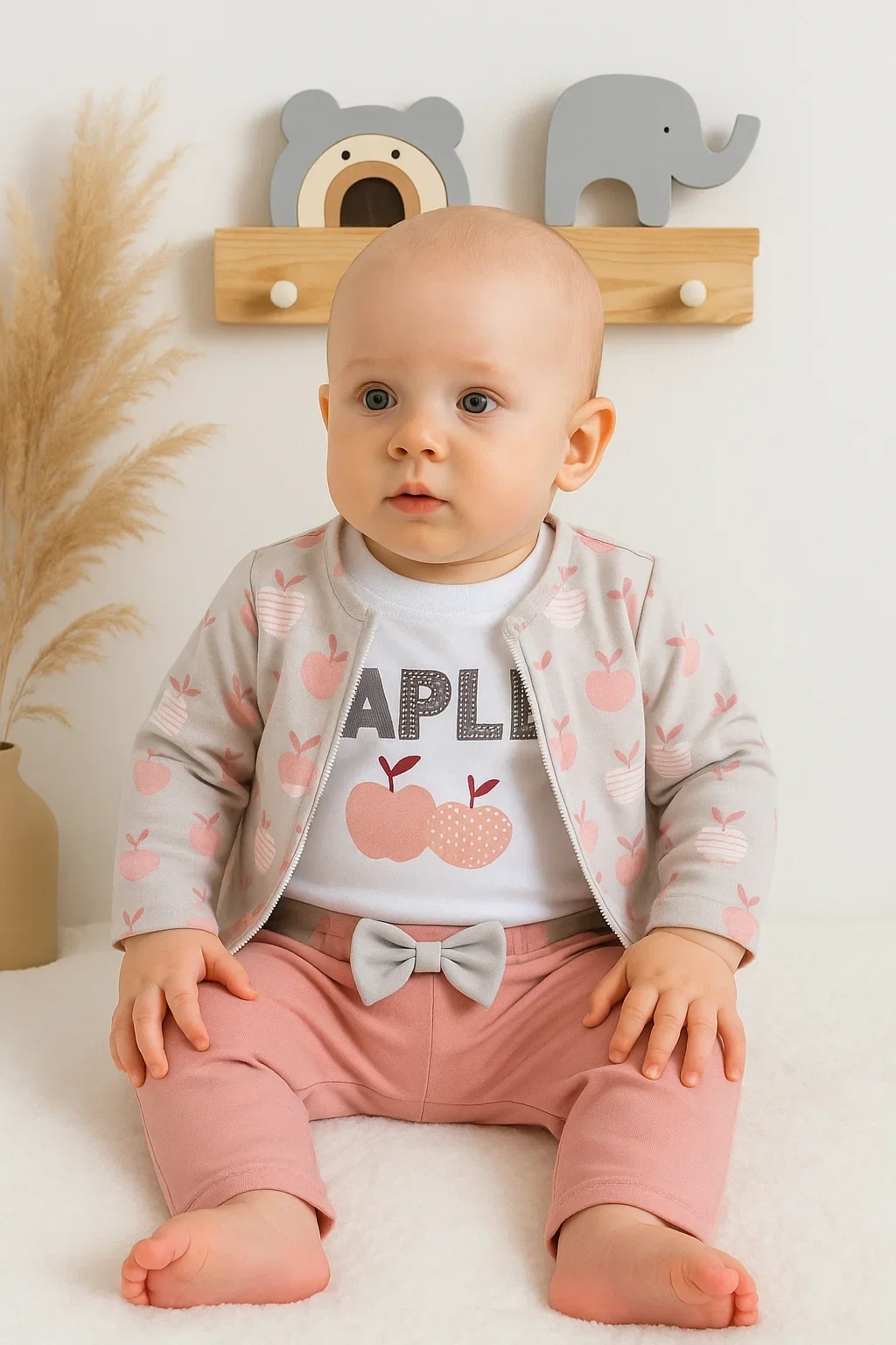 Elma Desenli Ceketli 3'lü Kız Bebek Takımı