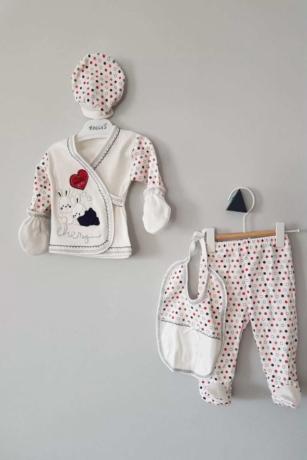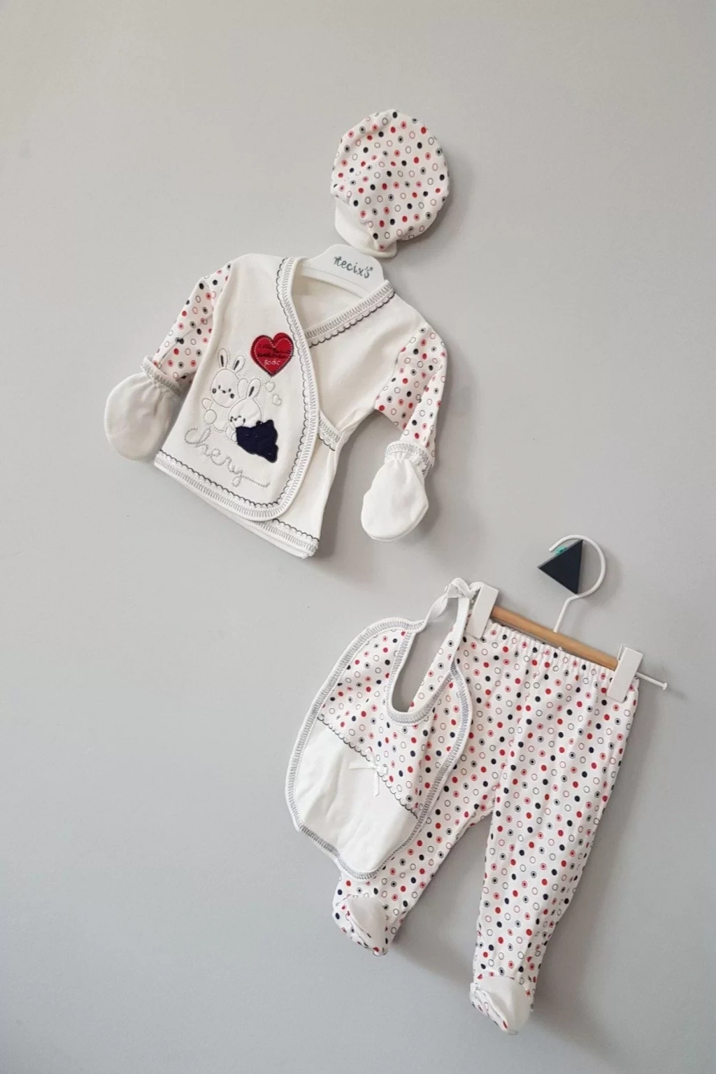 O Bebe 5li Hastane Çıkışı Yeni Doğan Zıbın Set Çantalı Ayı Kırmızı