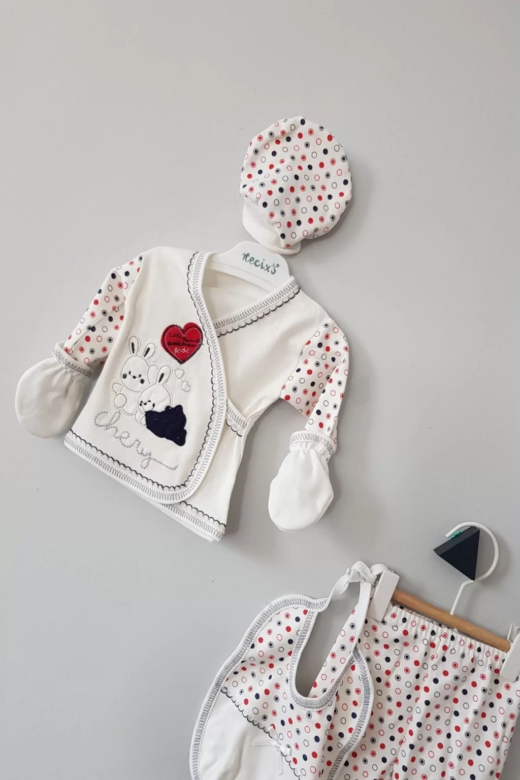 Love Bear Nakışlı 5'li % 100 Pamuk Erkek Bebek Hastane Çıkış Seti