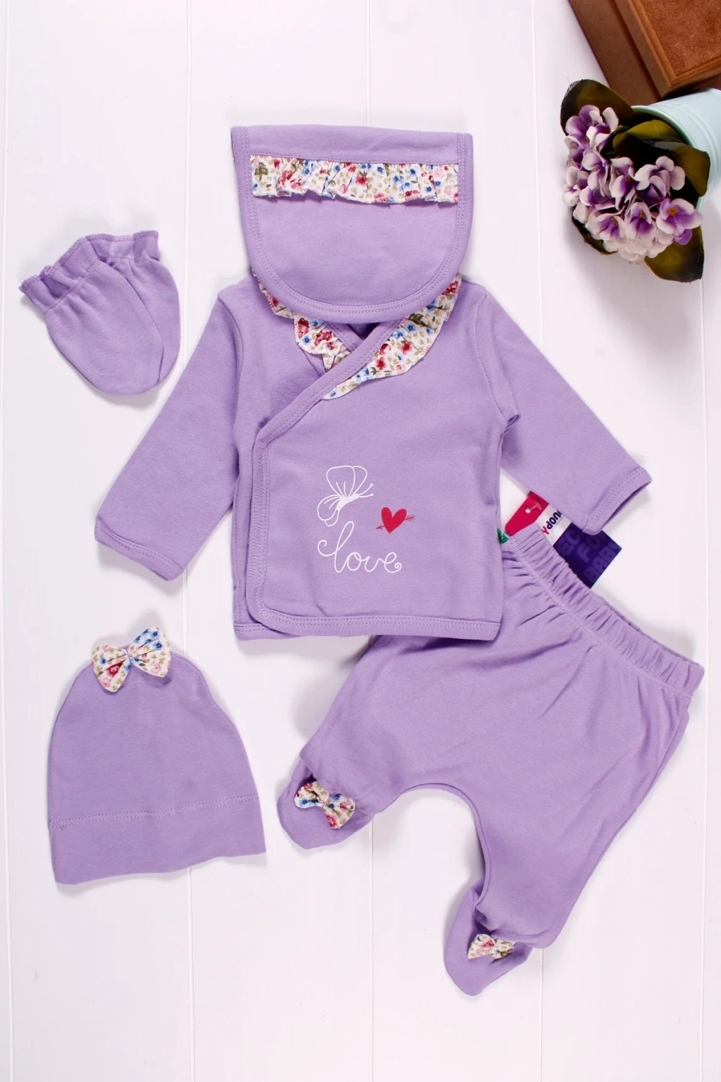 Kalp Desenli 5'li Kız Bebek Hastane Çıkış Seti