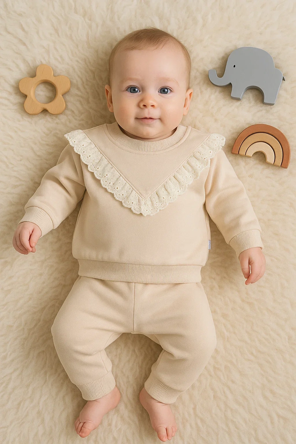 Yıldız Nakışlı Kapişonlu Kız Bebek Takımı
