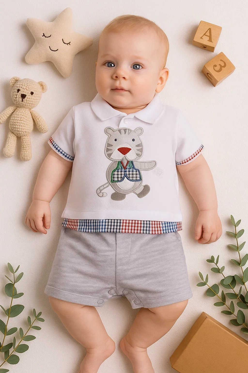 Balık Nakışlı Kısa Kollu Erkek Bebek Tulumu