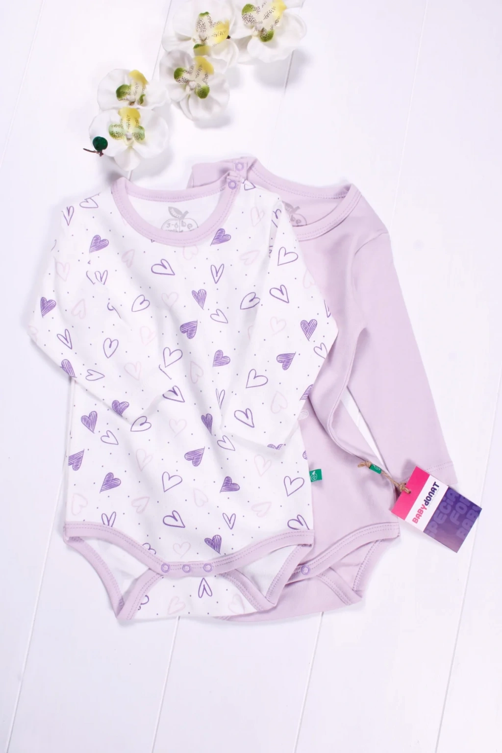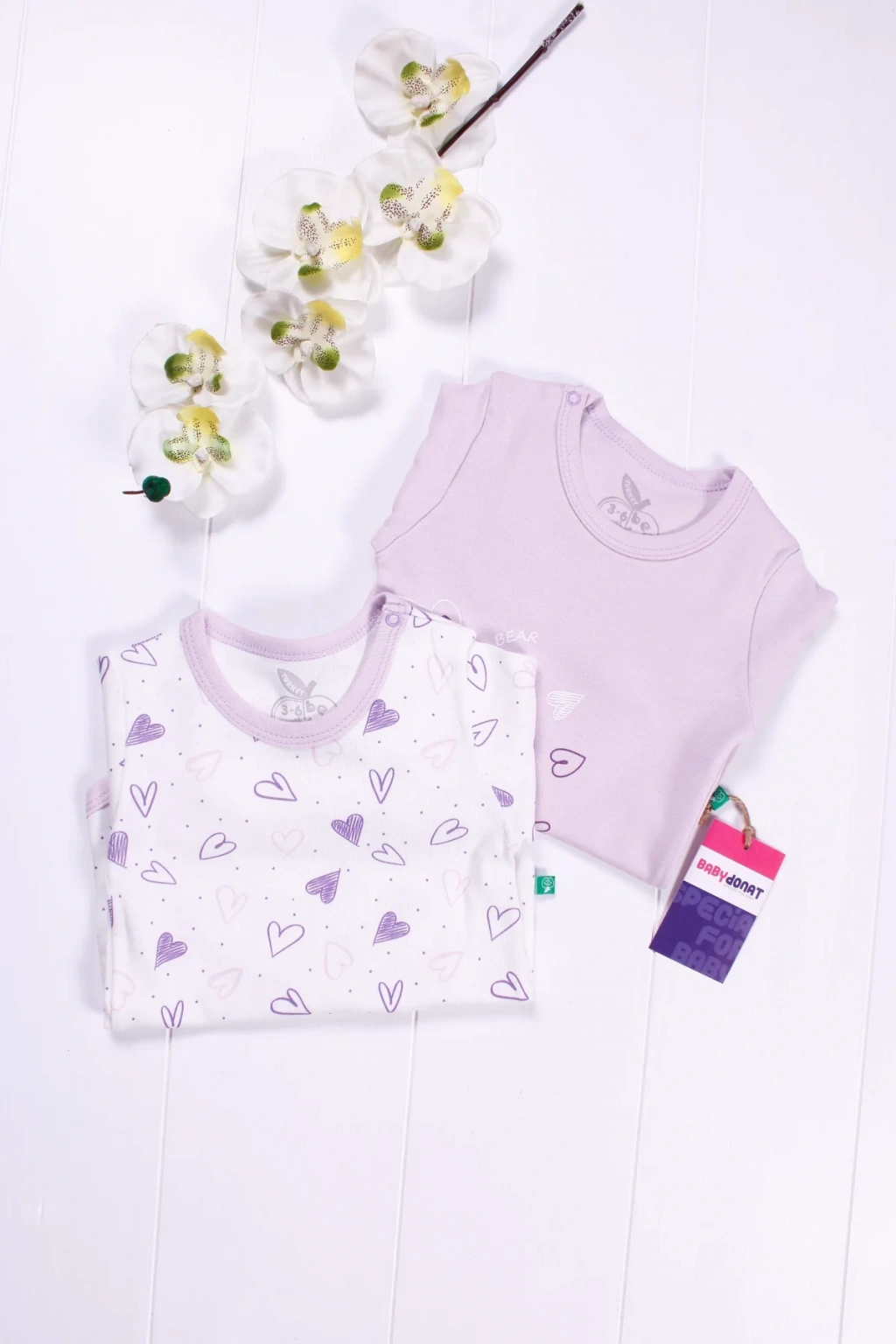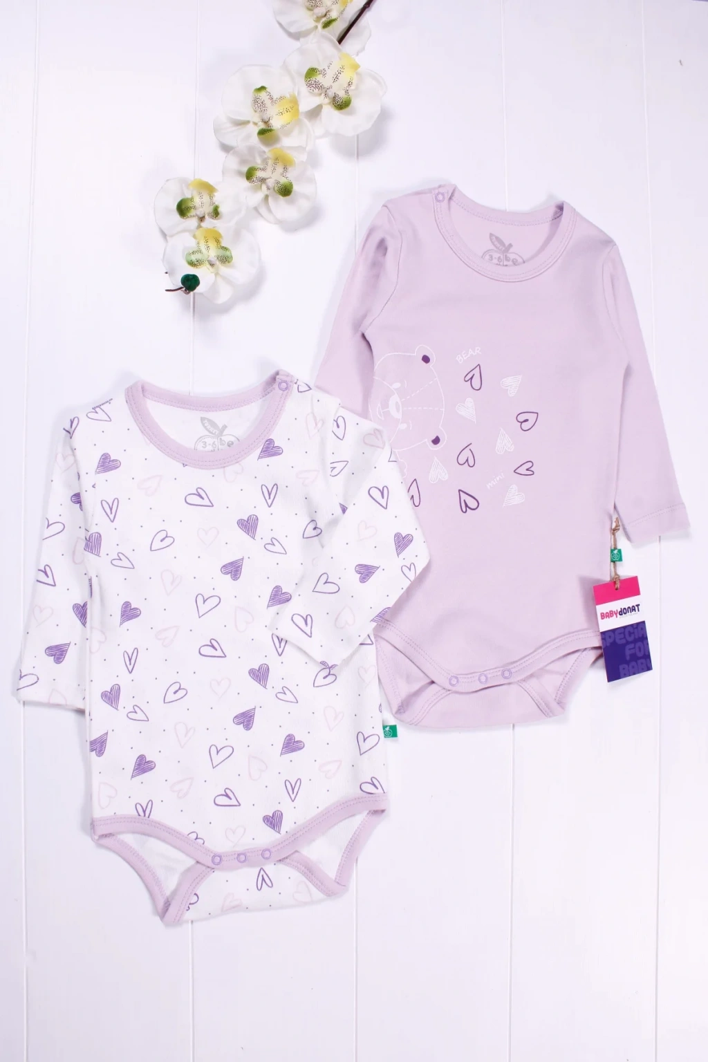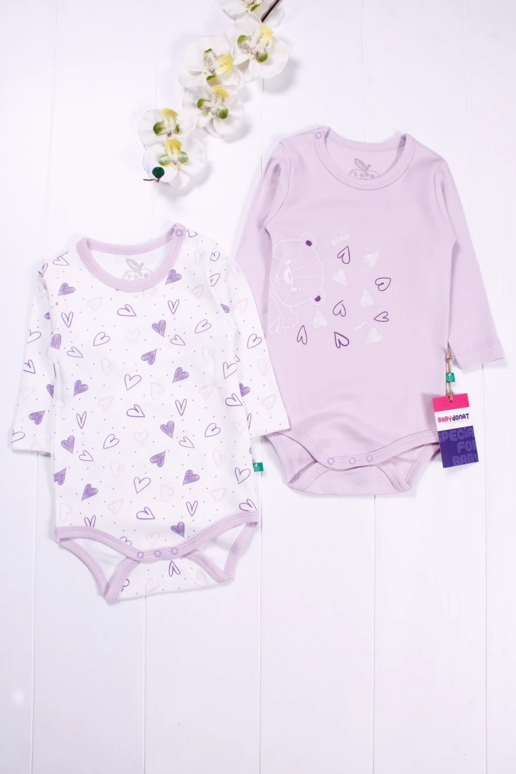 Kalp Desenli Uzun Kol 2'li Kız Bebek Body Seti