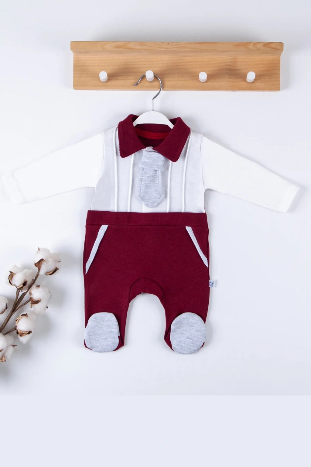 Kravat Aksesuarlı Ayaklı % 100 Pamuklu Erkek Bebek Tulumu