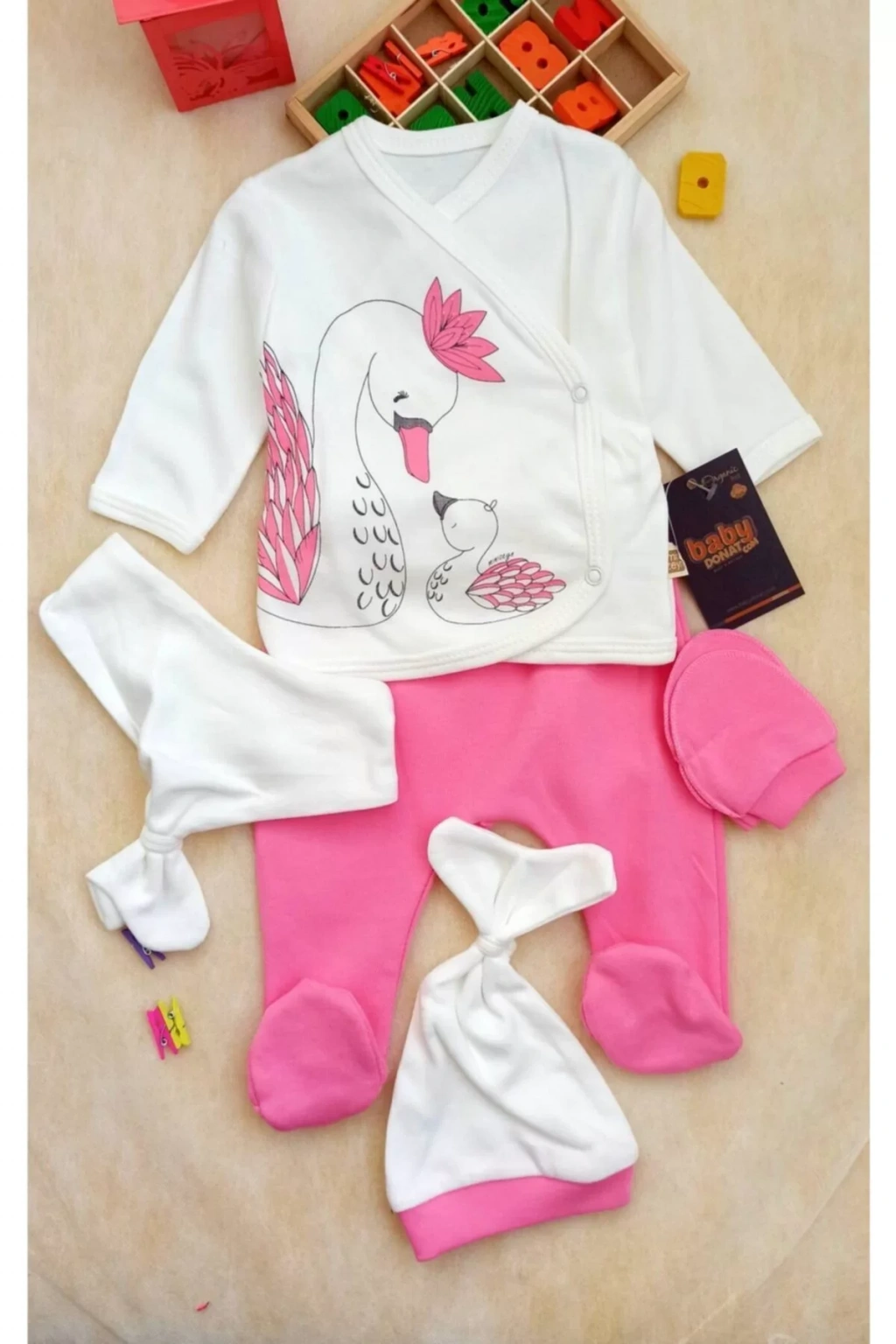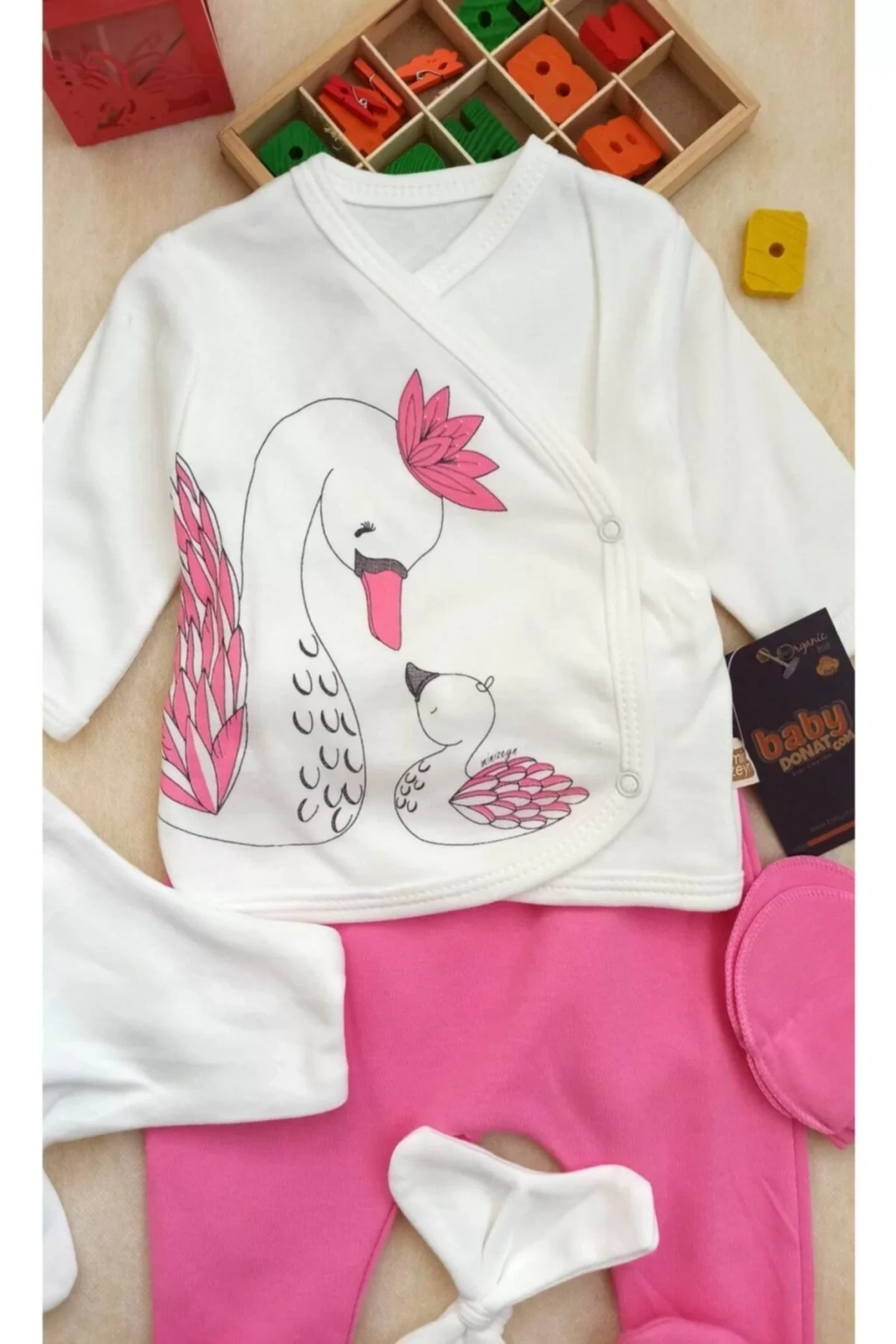 Kuğu Desenli 5'li Kız Bebek Hastane Çıkış Seti