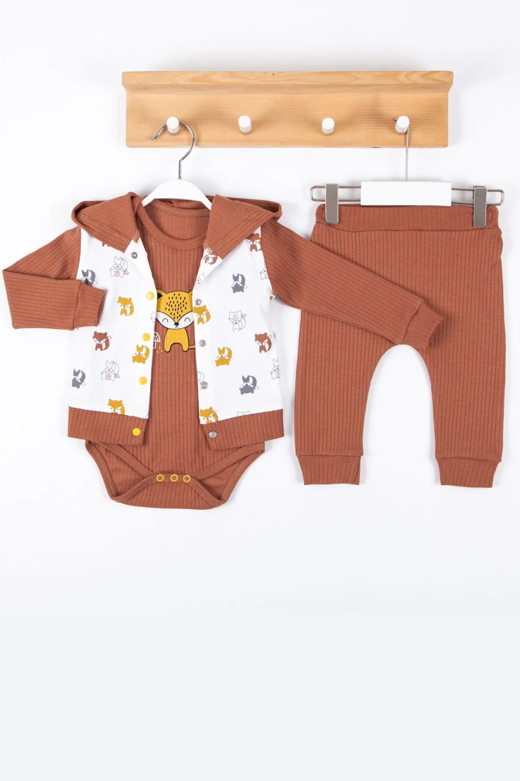 Bear Nakışlı Yelekli 3'lü Erkek Bebek Takımı