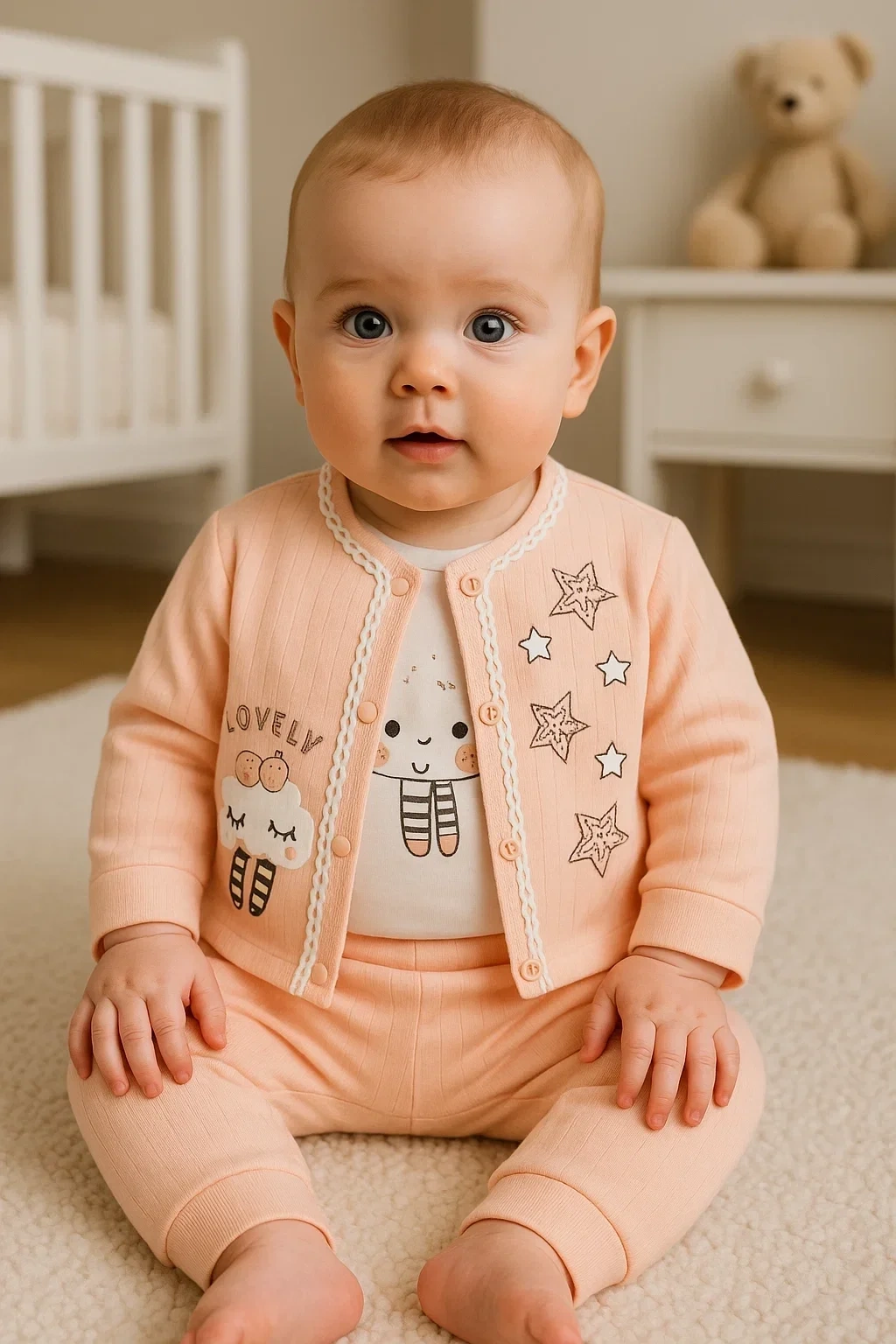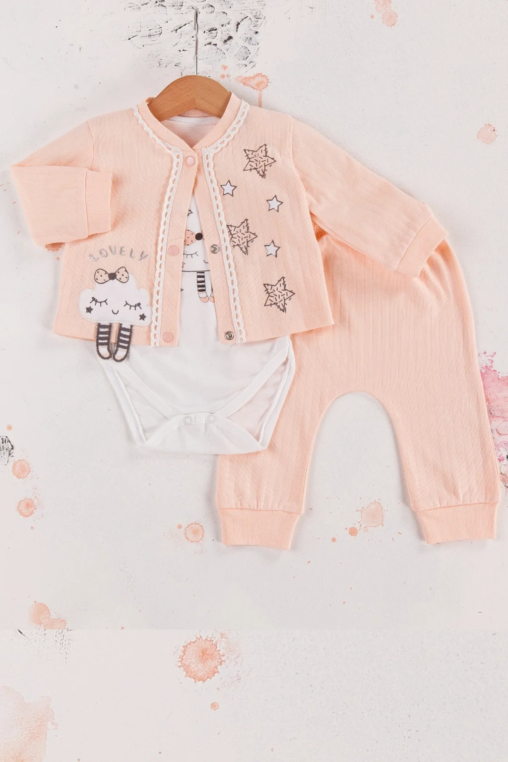Lovely Yıldız Desenli 3'lü Hırkalı Kız Bebek Takım