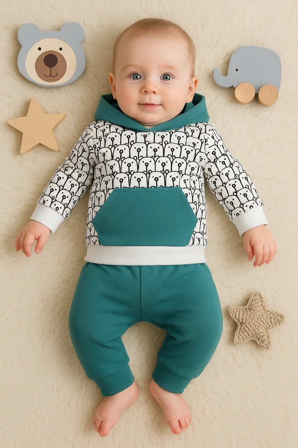Simply Desenli Kapişonlu 3'lü Erkek Bebek Takımı