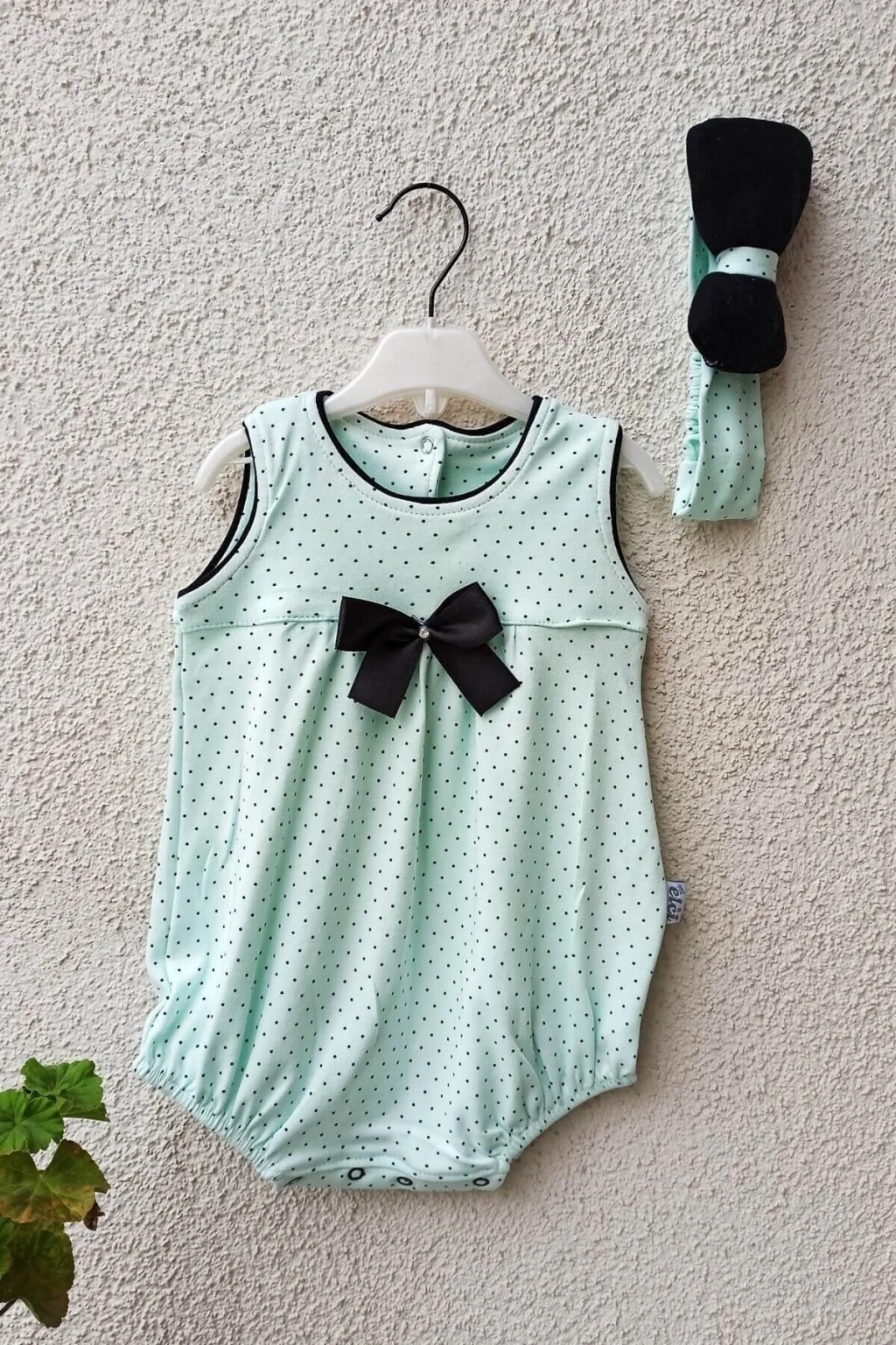 Bebek Yakalı Çiçek Işlemeli Bandanalı Badi 3-6-9 Ay