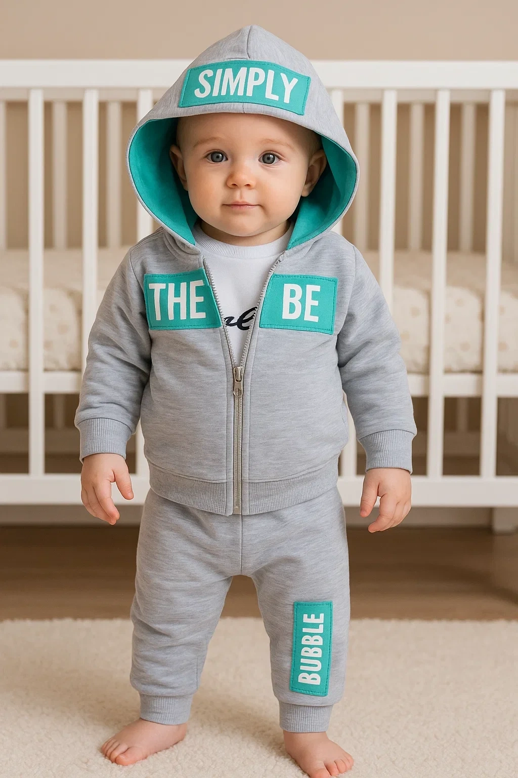 Simply Desenli Kapişonlu 3'lü Erkek Bebek Takımı