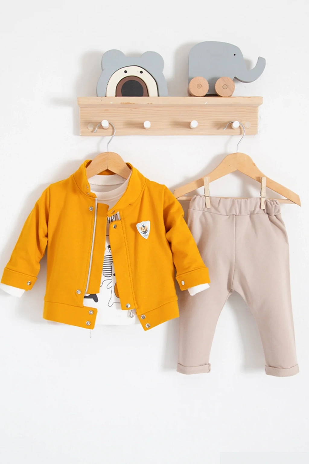 Zürafa Desenli Gömlek Yakalı 3'lü Erkek Bebek Takımı
