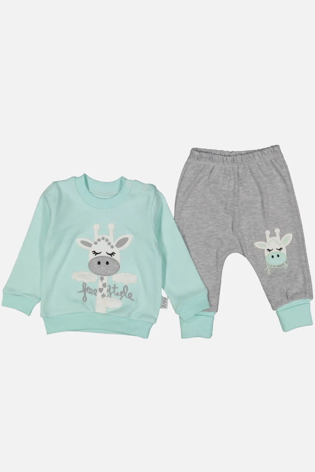 Zürafa Nakışlı % 100 Pamuk Kız Bebek Takımı