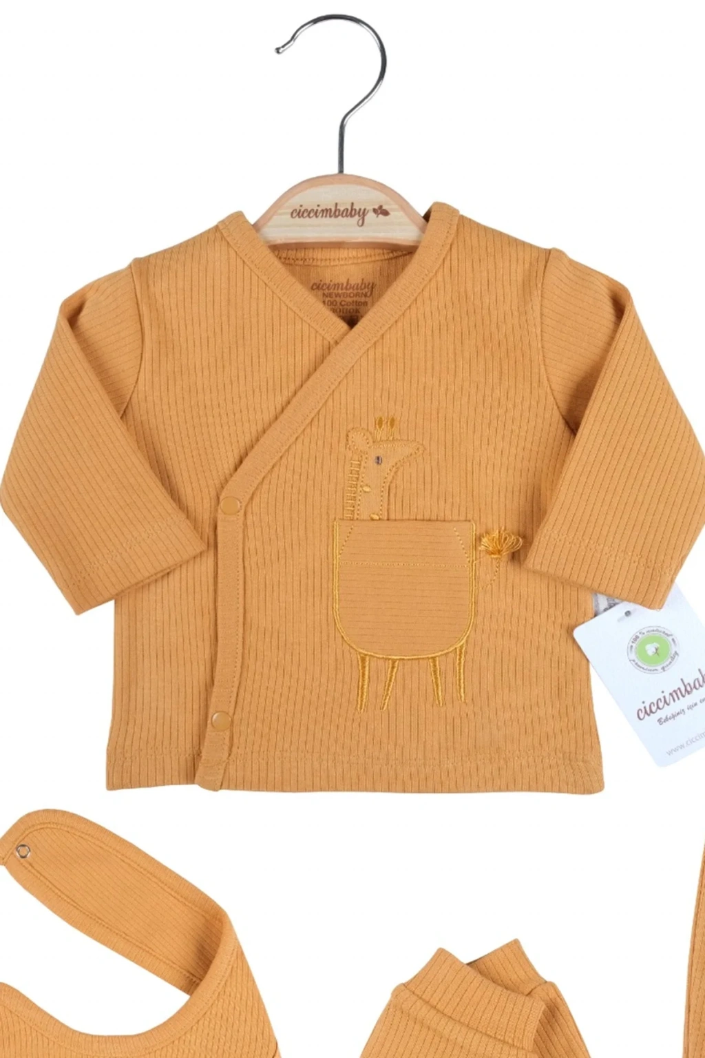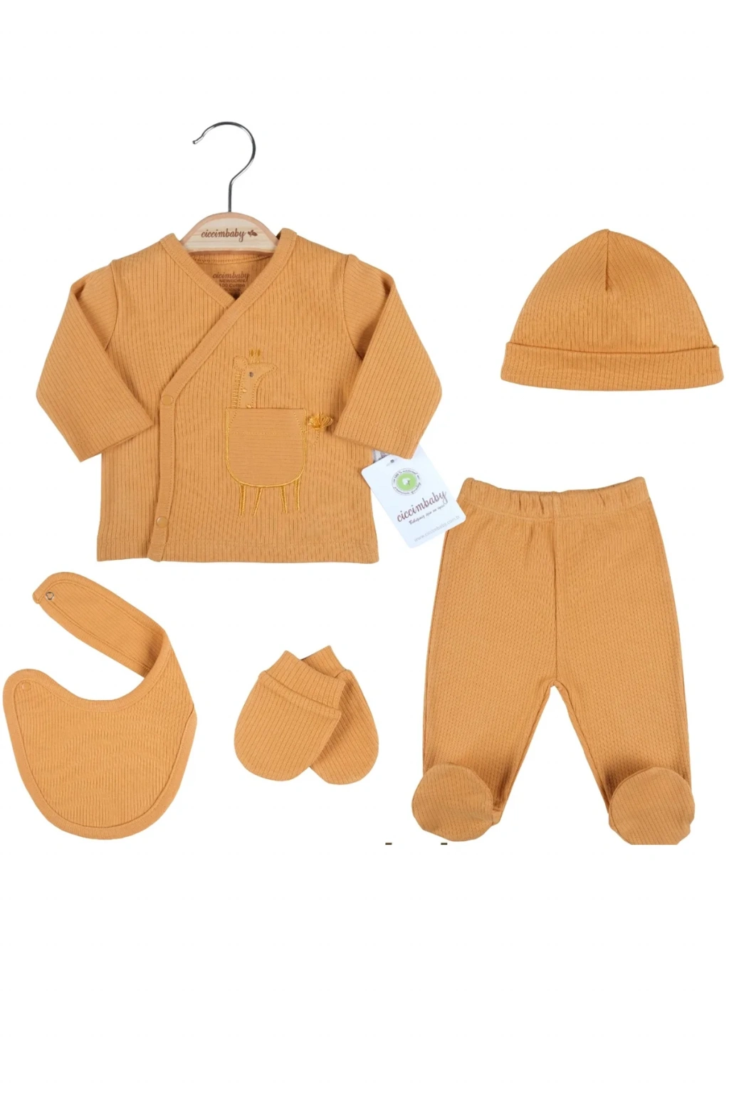 Zürafa Nakışlı Çizgili 5'li % 100 Pamuk Hastane Çıkış Seti